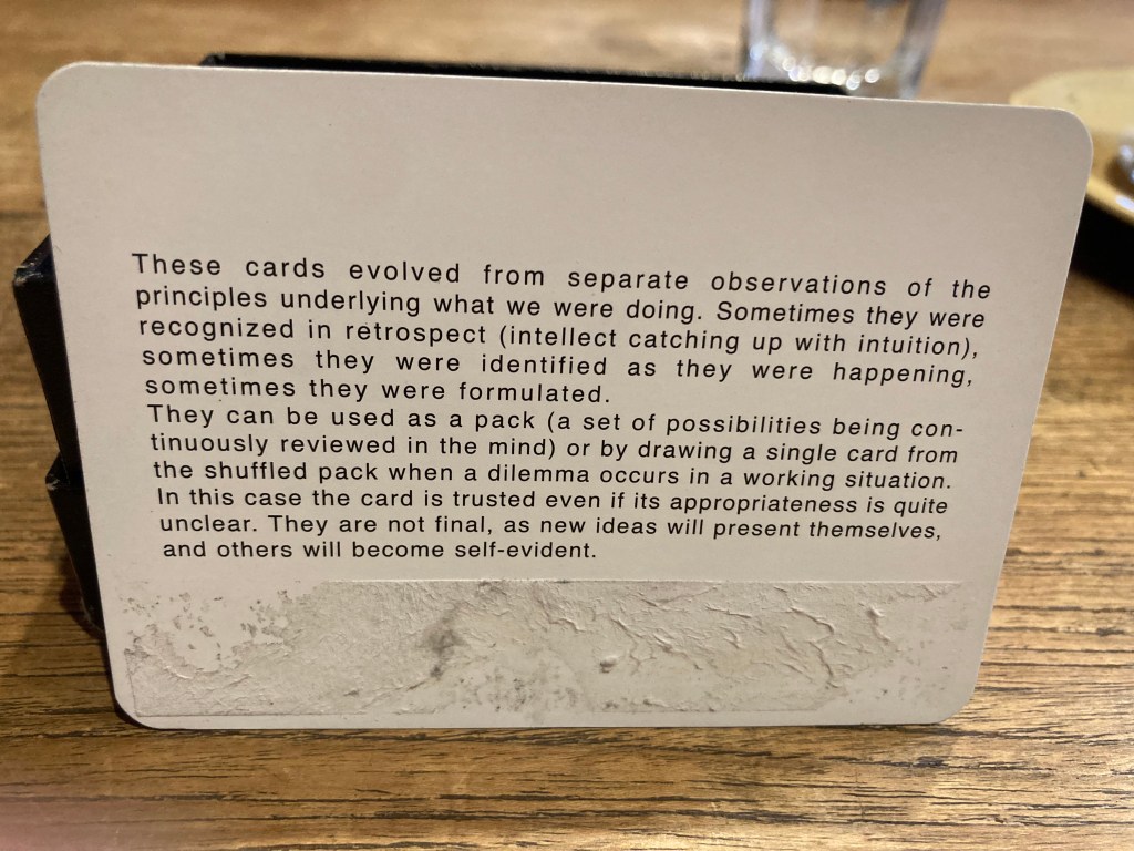 In 2022 I took Oblique Strategies to Europe with me for daily use alongside the
